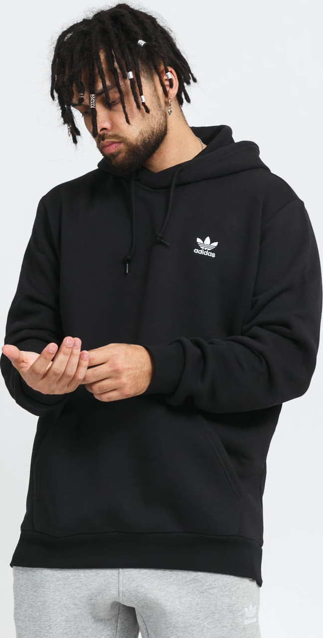 Černá pánská mikina s kapucí a klokaní kapsou od značky adidas Originals s bílým logem na hrudi.