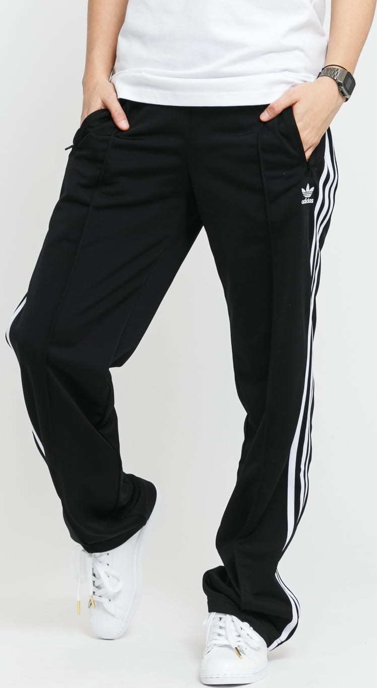 Černé tepláky od značky adidas Originals s bílými postranními pruhy a decentním logem na levé nohavici.