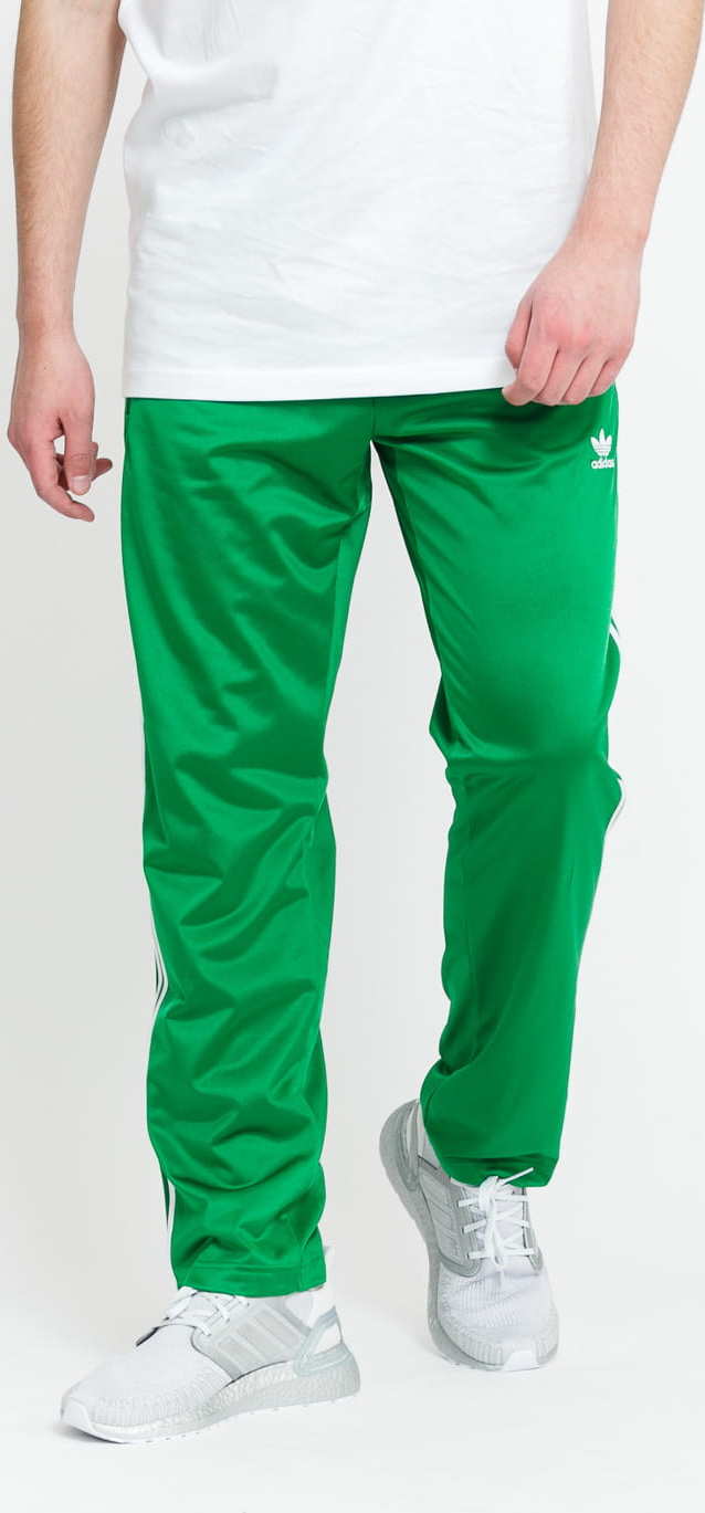 Zelené pánské tepláky od značky adidas Originals s decentním logem na levé nohavici a postranními pruhy.