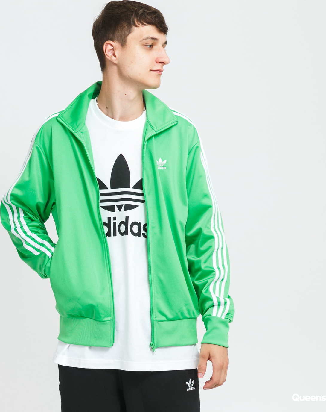 Zelená pánská větrová bunda od značky adidas Originals s bílým logem na hrudi a pruhy na rukávech.