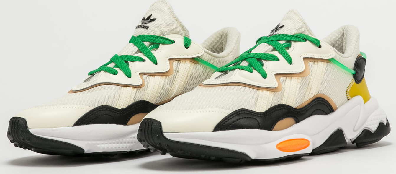 Nízké tenisky od značky adidas Originals s pojmenováním Ozweego v béžovém provedení s černobílou podrážkou.