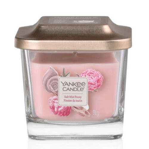 Aromatická svíčka malá hranatá provoní váš domov vůní pivoněk s kapkami slané vodyPopisSložení