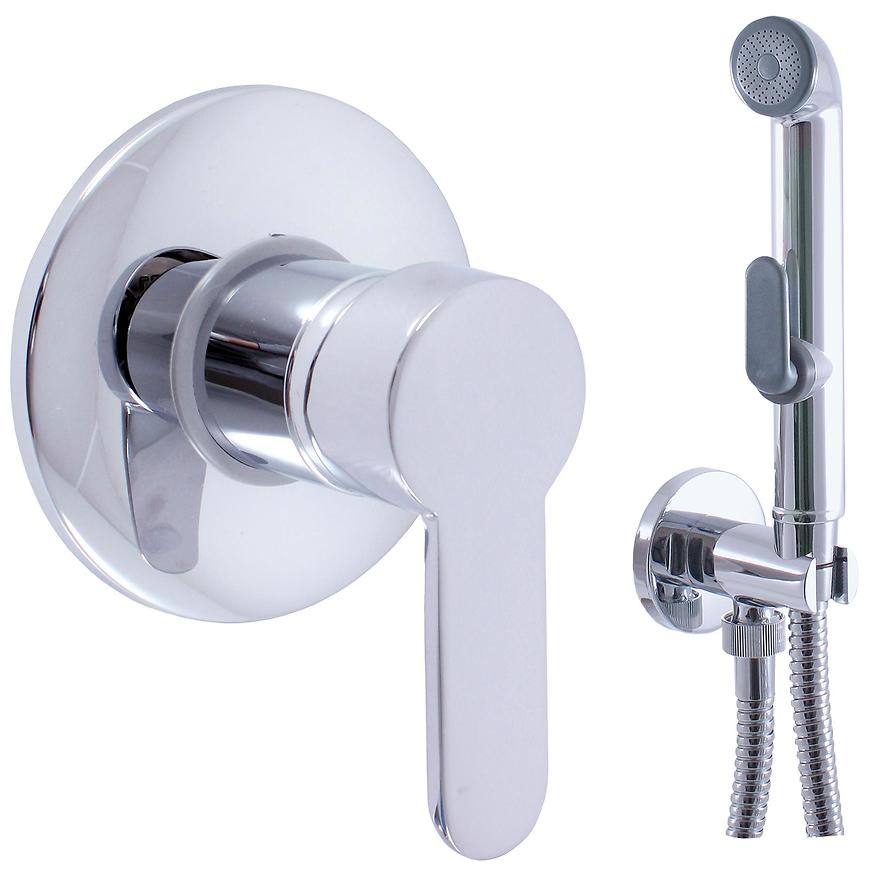 Baterie bidetová vestavěná, včetně podomítkového tělesa, držák sprchy se stop-ventilem, s hadicí a sprchou s tlačítkovým mechanismem-plast.