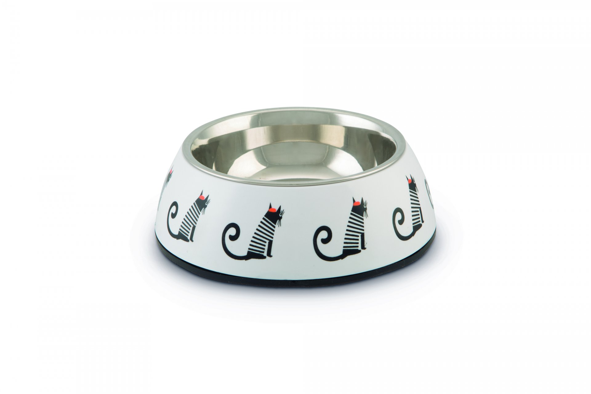 Chcete pro svou kočičku zábavnou misku Zvolte misku Beeztees Muzy Tato plastová miska má krásný tvar a po obvodu veselou kresbu kočky Spodní část obsahuje protiskluzové koncovky zabraňující posouvání misky při krmení Vnitřní nerezová miska je vyjímatelná Rozměr 14 cm 160 ml