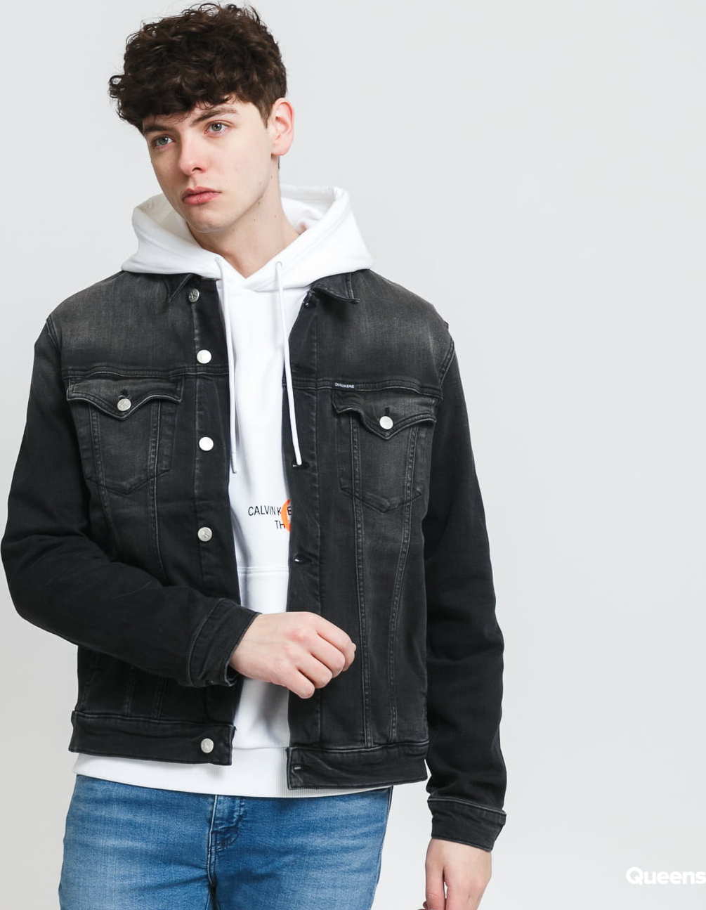 Černá pánská jeans bunda s kapsami na hrudi od značky CALVIN KLEIN JEANS s decentním logem na hrudi.