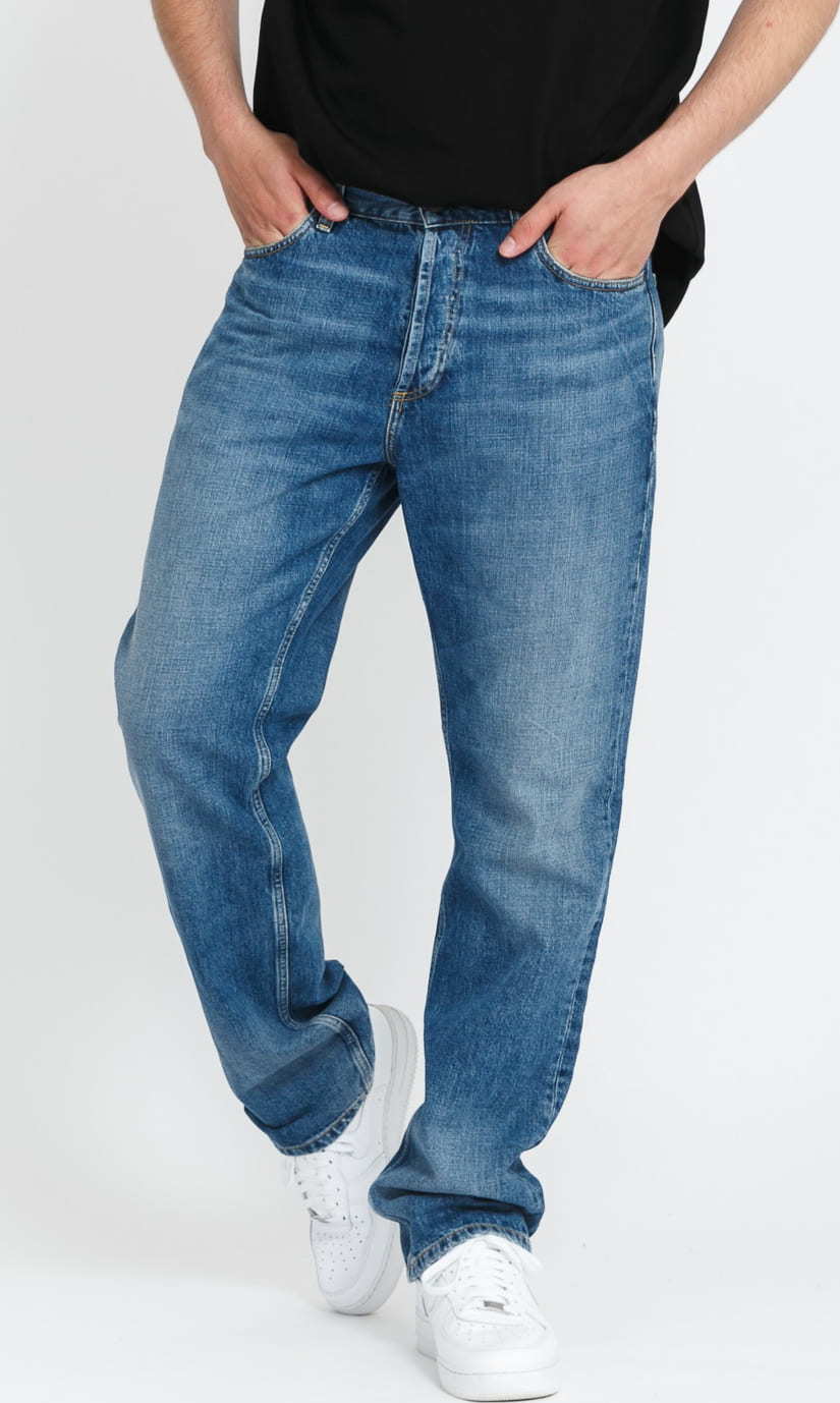 Modré pánské washed jeans kalhoty od značky Carhartt WIP s decentním logem na zadní kapse.