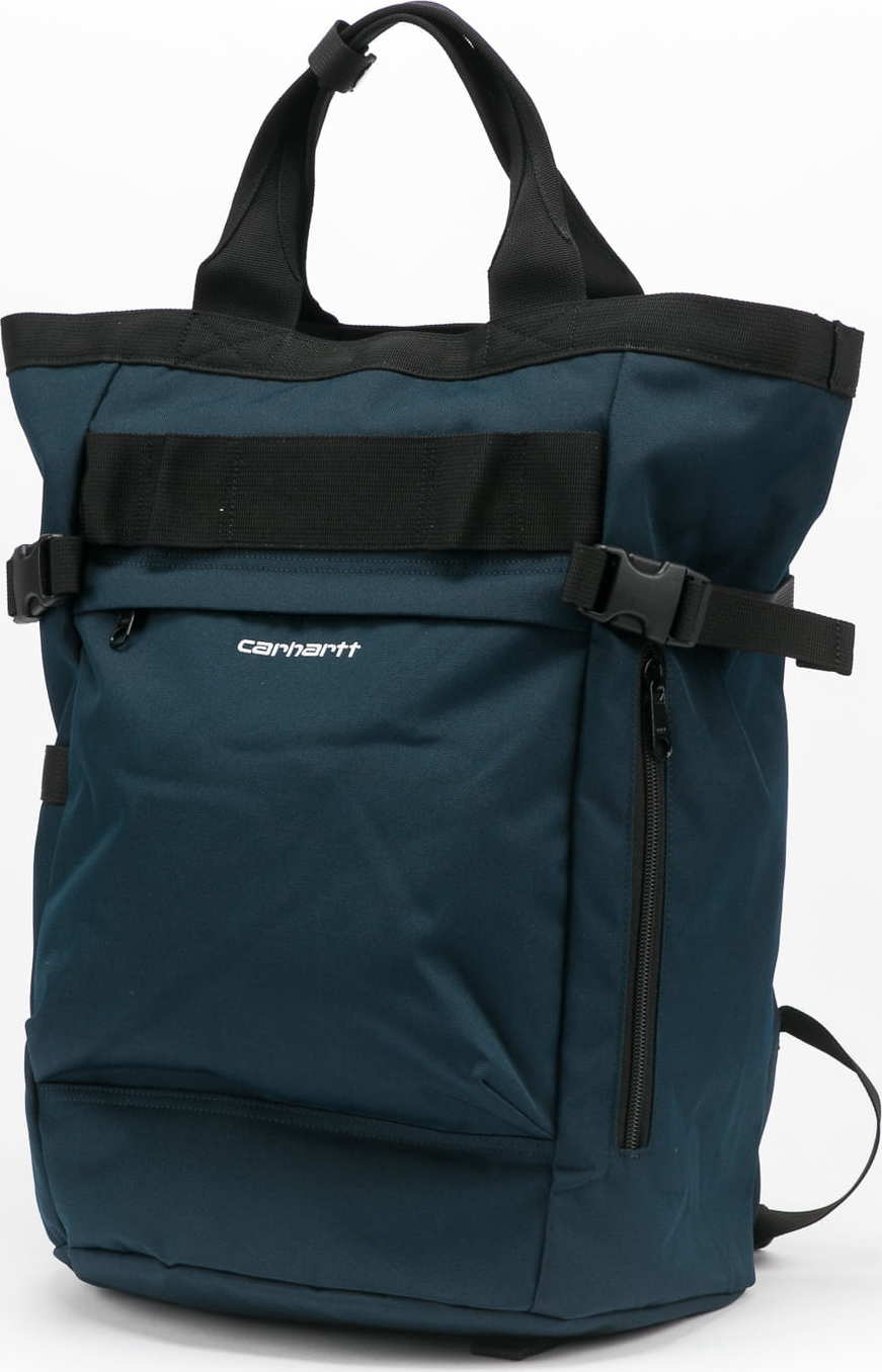 Jednokomorový batoh od značky Carhartt WIP v tmavě tyrkysovém provedení s černými částmi a bílým decentním logem na přední části.