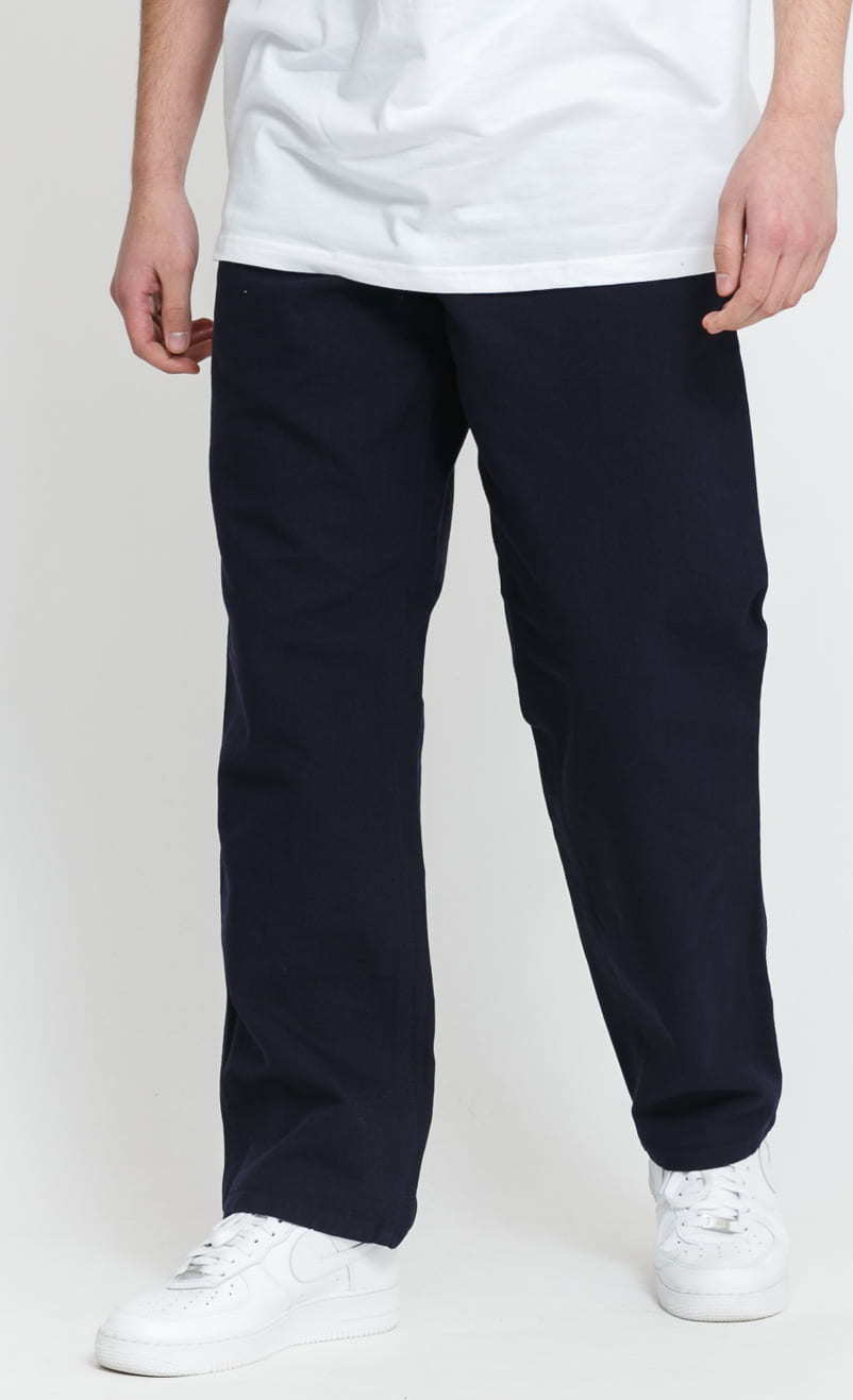 Tmavě modré pánské kalhoty od značky Carhartt WIP s decentním logem na zadní kapse.