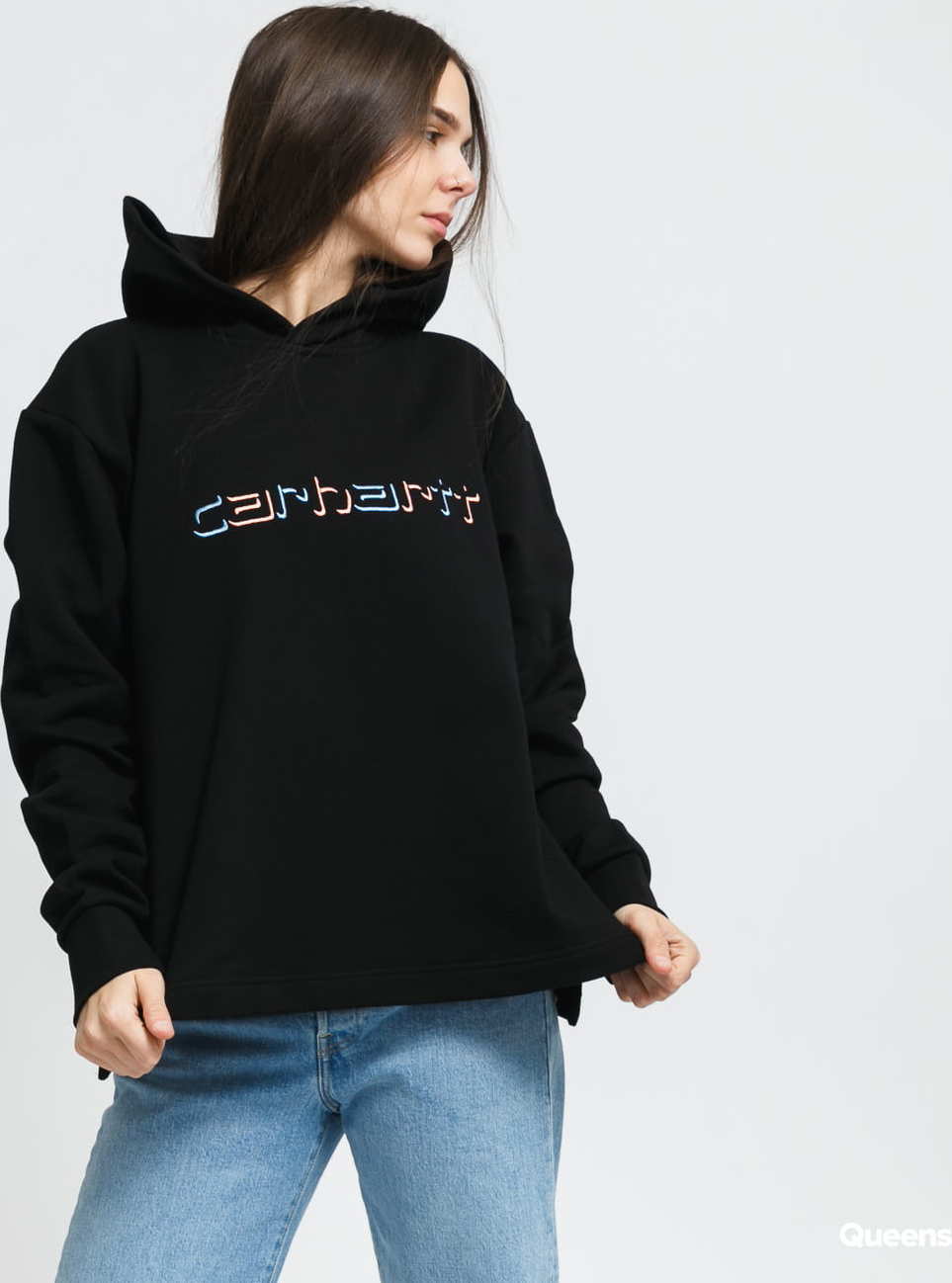 Černá dámská mikina s kapucí od značky Carhartt WIP s barevným logem na hrudi.
