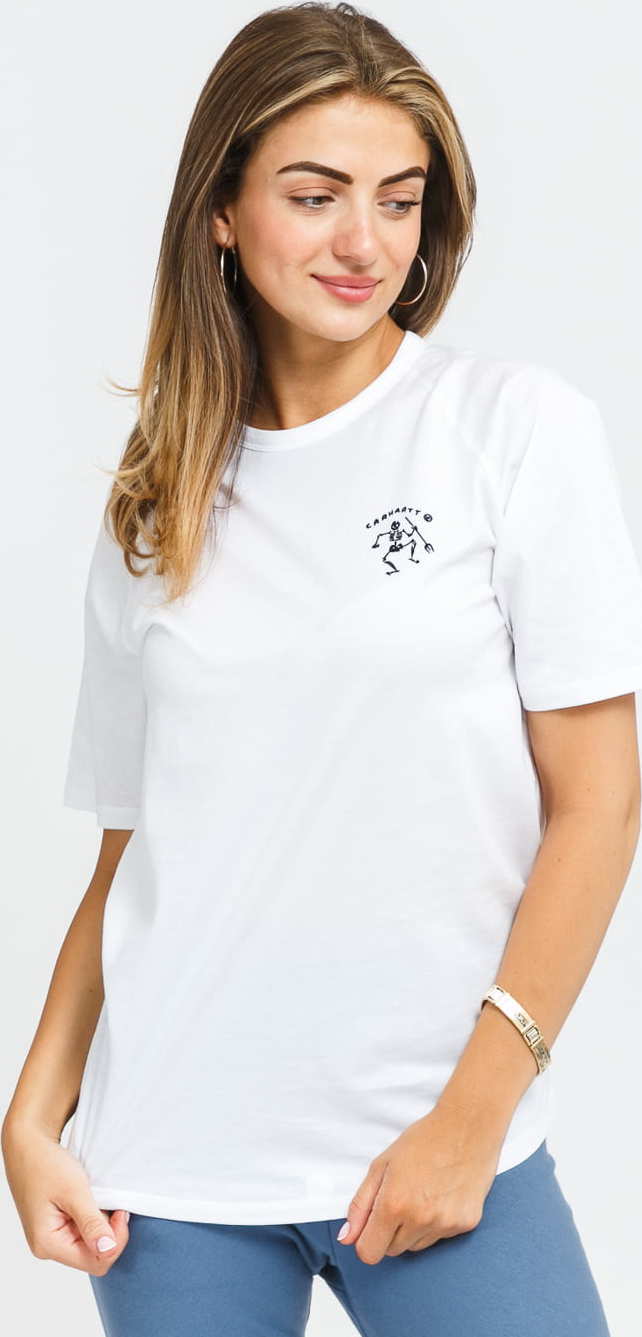 Bílé dámské tričko s krátkými rukávy od značky Carhartt WIP s decentním černým motivem na hrudi.