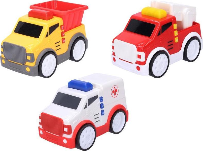 Dopravní prostředek 16 cm, BO. Vytváří světelné a zvukové efekty. 3 ast – sklápěč, hasiči, sanitka Pořiď si jedno z autíček a zažij spoustu akce a zábavy! Zmáčknutím tlačítka aktivuješ pohyb auta, zvukové i světelné efekty! Varianty. hasiči sanitka náklaďák Velikost: 16 cm Doporučený věk: od 24 měsíců Baterie 2xAA jsou součástí balení.