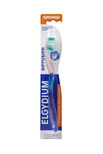 Zubní kartáček s měkkými vlákny s inovativní technologií AFT umožňující čištění stoliček povrchu zubů a mezizubních prostor zároveň Navíc na spodní části hlavice kartáčku je speciální plocha pro čištění jazyka