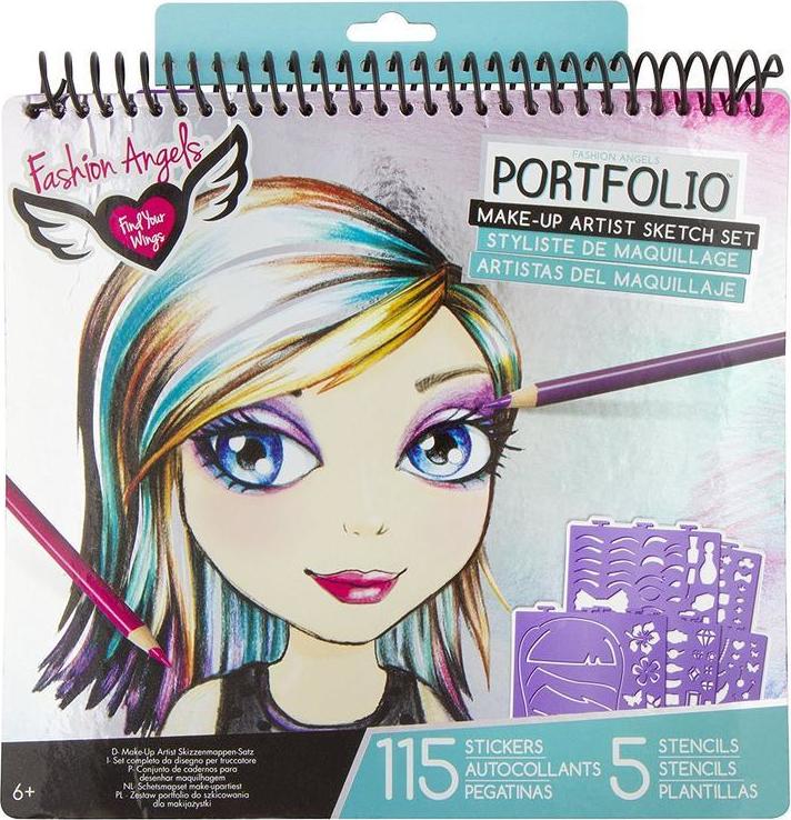 portfolio make-up, 44 výkresových listů, make-up šablony, nálepky Máš ráda make-up? Vyjádři svůj tvořící talent s tímto Fashion Angels Portfolio. Spirálově vázané portfólio je perfektní aktivitou na cesty. Obsah balení: 44 výkresových listů make-up šablony nálepky Doporučený věk: od 6 let