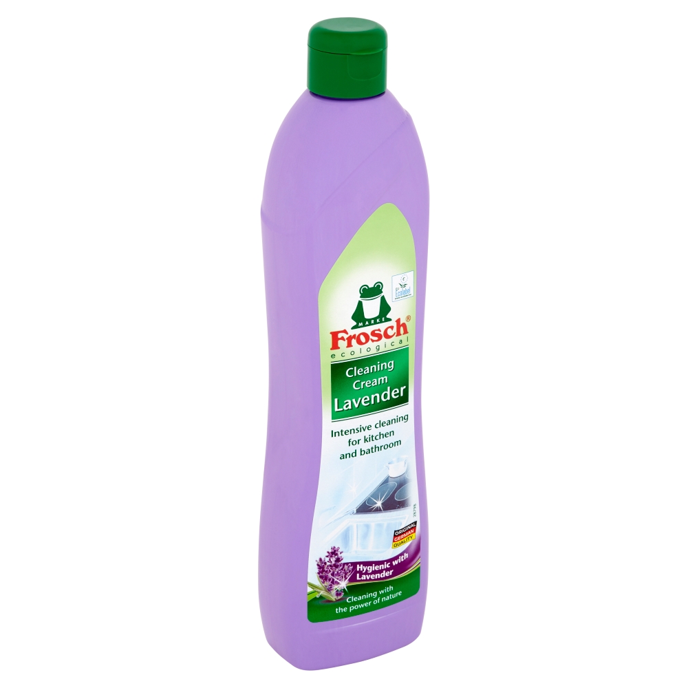 Perfektního a důkladného výsledku při úklidu vaší koupelny či kuchyně dosáhnete díky kvalitnímu čistícímu krému Frosch levandule Výborně odstraňuje všechny nečistoty včetně mastnoty zbytků mýdel i vodního kamene Zanechá za sebou pouze hygienickou čistotu a květinovou vůni levandulí Čisticí a odmašťující účinek krému Frosch zajišťuje obsah přírodní mramorové moučky a výtažek z levandule Můžete jej použít na keramické smaltované i nerezové povrchy nebo sklokeramické desky Díky svému složení je šetrný k vaší pokožce i životnímu prostředí EKO čisticí krém Levandule totiž obsahuje ingredience z přírodních čisticích látek žádné mikroplasty a je ryze veganský Výrobek byl oceněn certifikátem EU Ecolabel