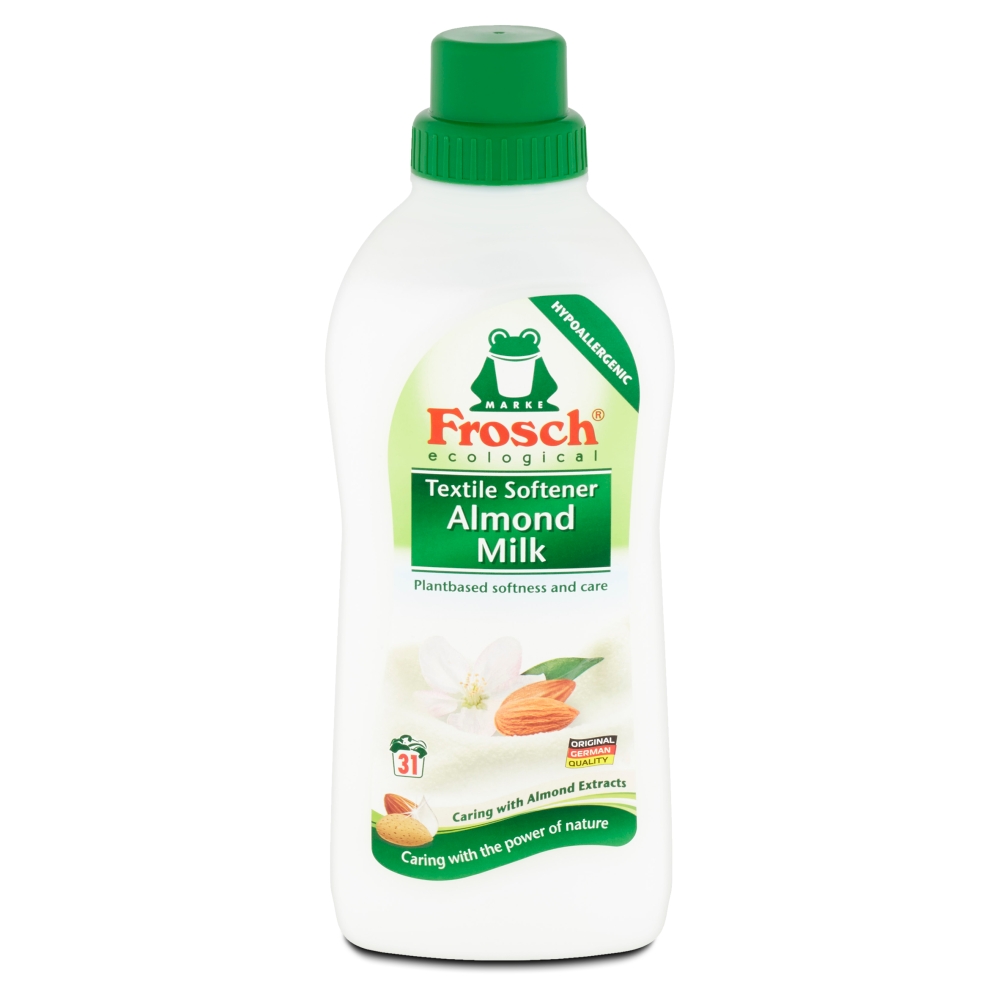Hypoalergenní aviváž Frosch s mandlovým mlékem pro voňavé jemné a pečlivě upravené barevné a bílé prádlo Je složena ze surovin na rostlinné bázi proto zachovává prodyšnost vašich oděvů a poskytuje jim přirozenou ochranu a péči Riziko podráždění pokožky je sníženo pečlivým výběrem vonných látek Díky obohacení o přírodní extrakty z mandlí získáte jemnou ale účinnou péči o oděvy a pokožku Prádlo po použití aviváže jemně voní a je příjemné na dotyk