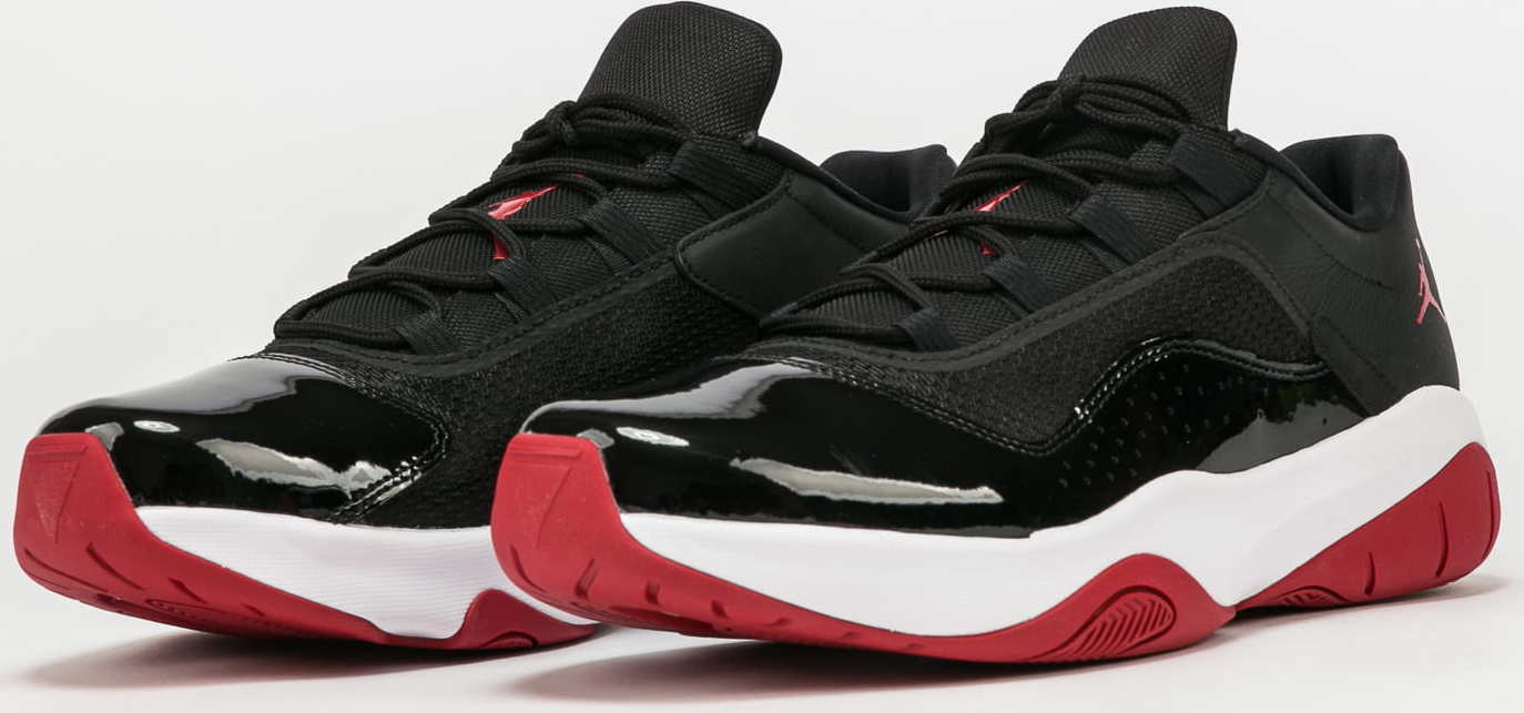 Nízké tenisky od značky Air Jordan s pojmenováním 11 CMFT Low v černém provedení s bíločervenou podrážkou.