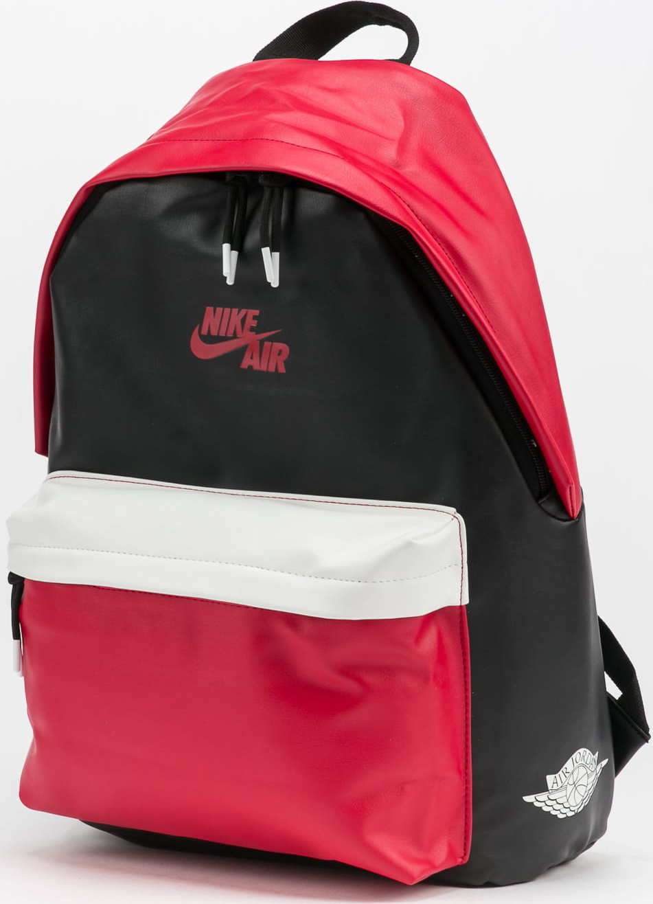 Jednokomorový batoh od značky Air Jordan z řady 1 v černém provedení s bílými, červenými motivy a logy na přední části.