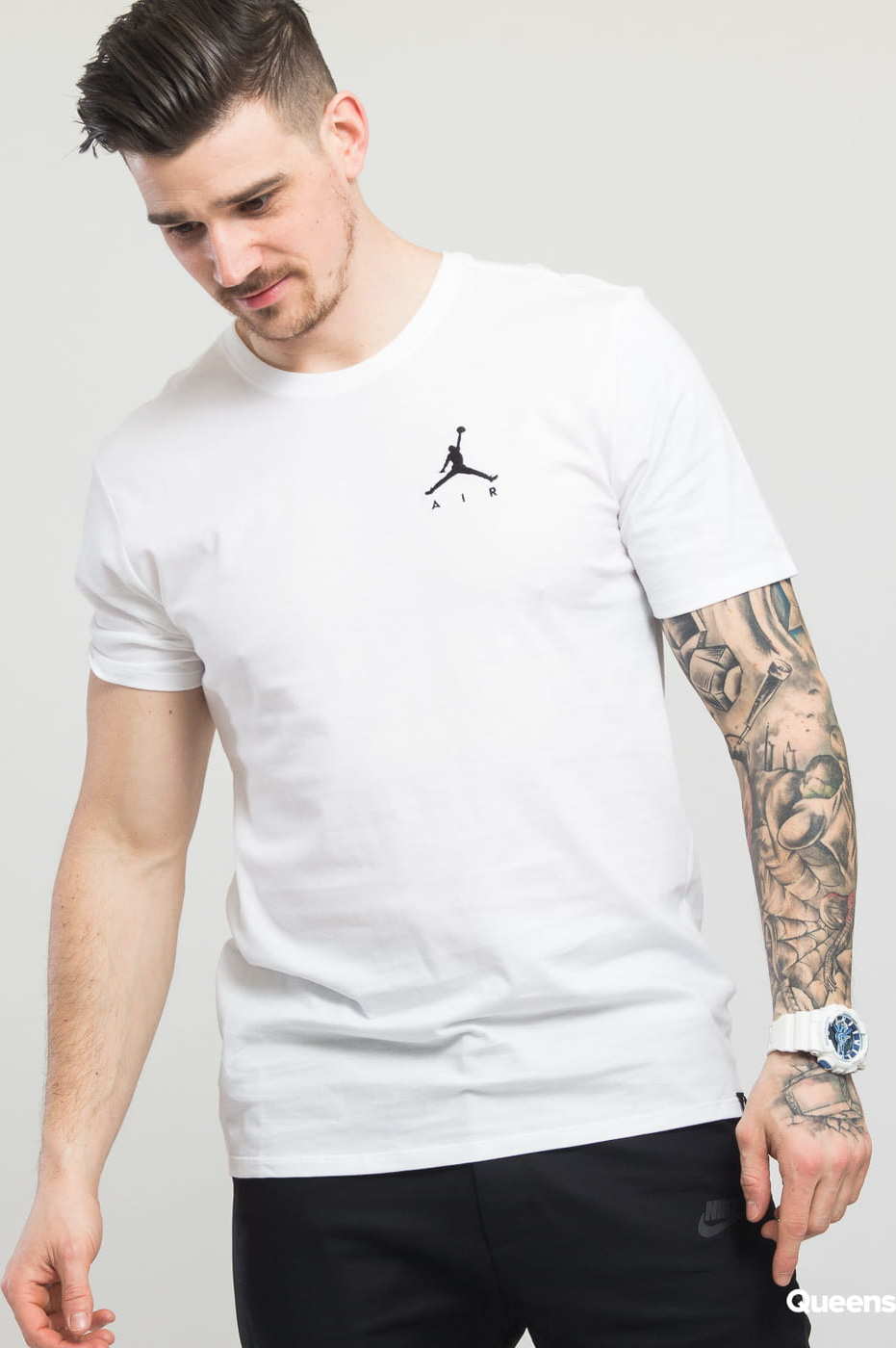 Bílé pánské tričko s krátkými rukávy od značky Air Jordan s černým logem na přední části.
