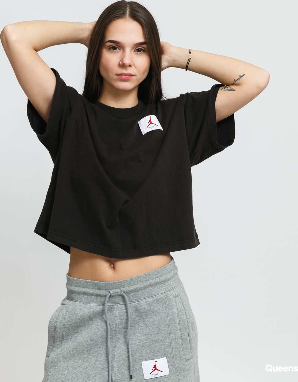 Černé dámské tričko s krátkými rukávy od značky Air Jordan s decentním logem na přední části.
