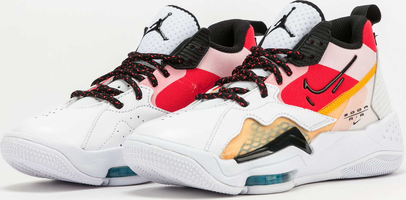 Nízké tenisky od značky Nike s pojmenováním WMNS Zoom 90 v bílém provedení s barevnými a černými motivy.