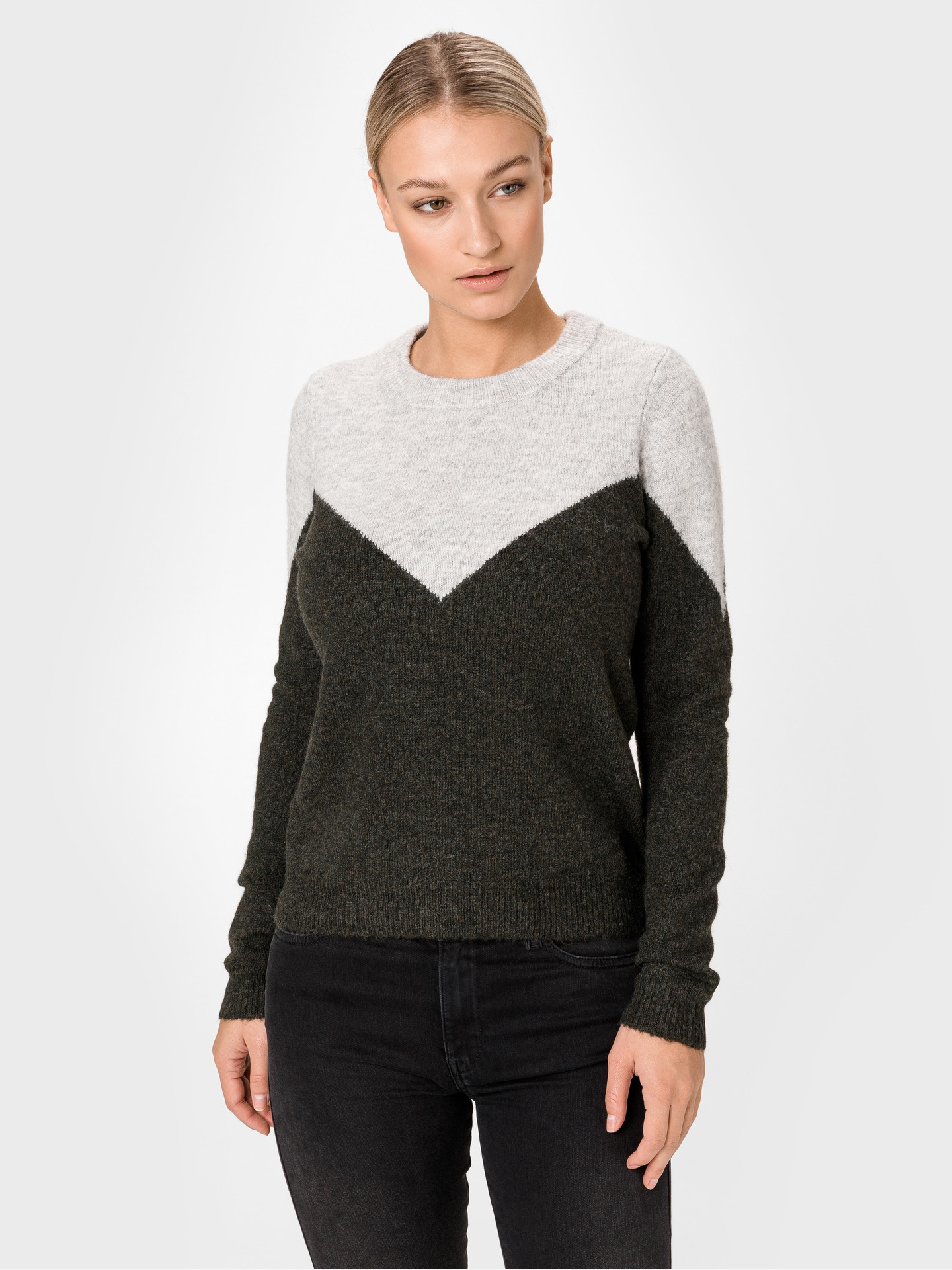 Materiál: 50 % recyklovaný polyester, 22 % akryl, 12 % polyester, 9 % polyamid, 4 % elastan, 3 % vlna Střih: regular fit Typ: pletený Vzor: žíhaný Výstřih: kulatý Rukáv: dlouhý Praní: ruční Barva: šedá, černá