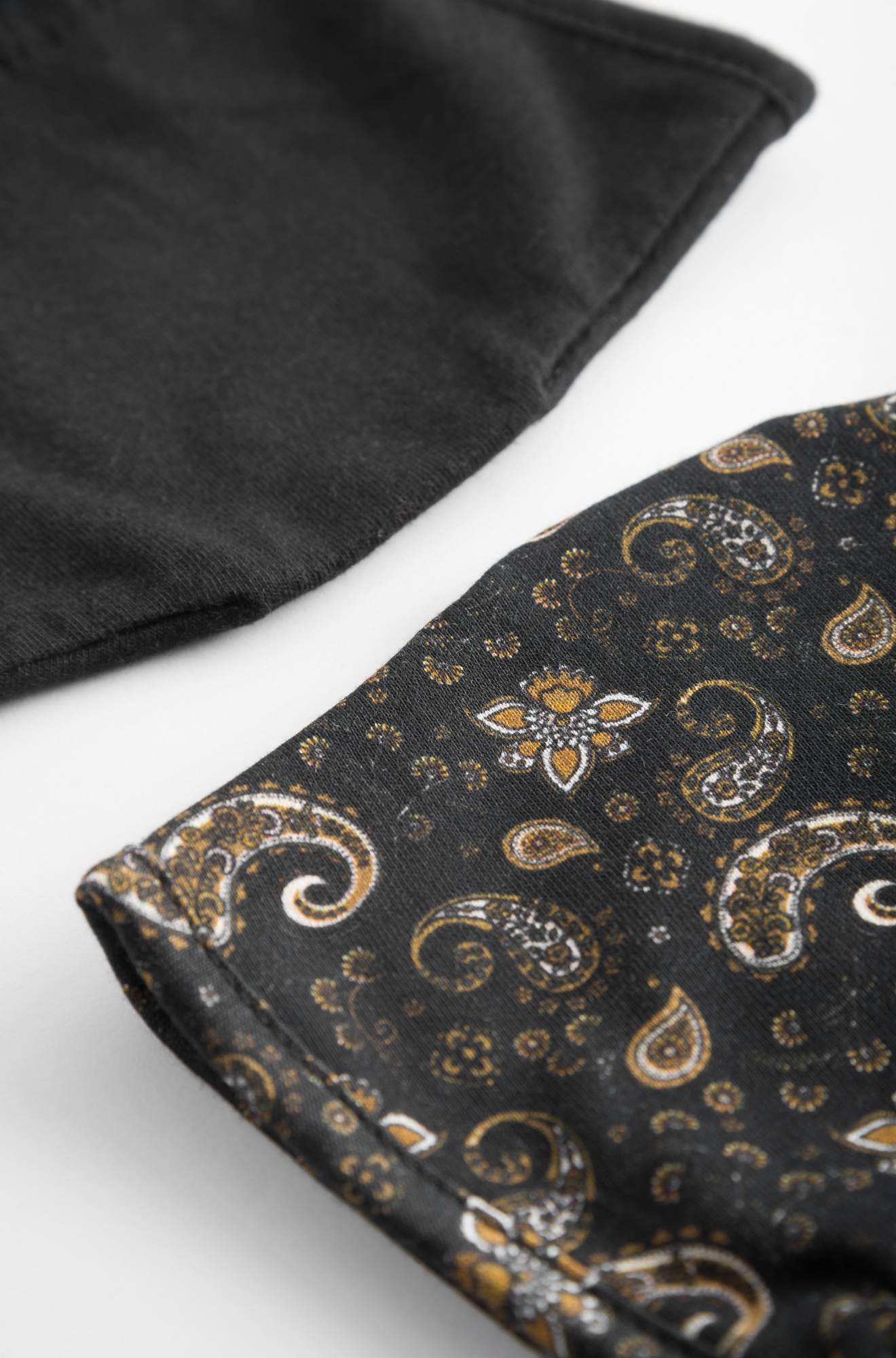 – – dvě profilované roušky – bez vzoru/s orientálním vzorem – s elastickými gumičkami s nastavitelnou délkou – s elastickým kovovým páskem přes nos – ušity z žerzejové látky s bavlněnou podšívkou – před prvním použitím prát při teplotě 60°C, po každém použití vyprat – roušky nemají certifikát zdravotnických prostředků – roušky jsou hygienickými potřebami, a proto toto zboží nelze vrátit