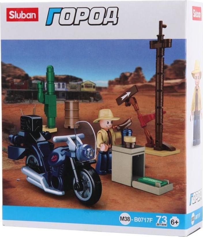 Nová série 6 motorkářů je velmi pěkná a propracovaná do detailů. Tento motorkář na své modré krásce Nová série 6 motorkářů je velmi pěkná a propracovaná do detailů. Tento motorkář na své modré krásce rád brouzdá prašným prostředím, jí párky a vše v kovbojském stylu. Všechny figurky Sluban mají realistický tvar, hlavičku i zápěstí na pohyblivém kloubu, v pase se otáčejí o 360° a nožičky jsou pohyblivé ve směru chůze a zároveň si zachovaly plnou kompatibilitu s kostičkami. Dílky stavebnic Sluban jsou kombinovatelné se stavebnicemi jiných značek stejného typu. Stavebnice obsahuje 73 dílků a jednu figurku. Doporučený věk: 6+