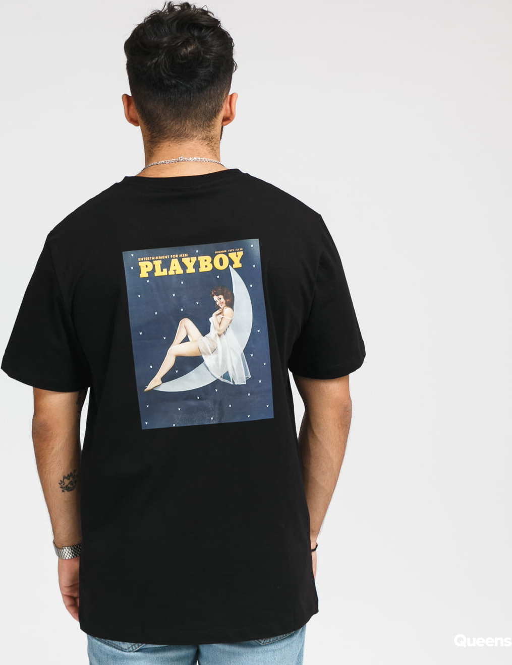 Černé pánské tričko s krátkými rukávy od značky Soulland s decentním nápisem na hrudi a barevným motivem na zádech.