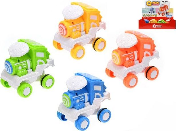Vláček 9cm zmáčkni a jeď rotační 360° 4barvy 18m+ 16ks DBX